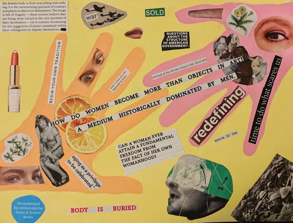 by Madeleine DayArtist Statement: This piece examines the complicated relationship between capitalism and the patriarchy. I was inspired to create the collage after reading “Always Be Optimizing”, one of the essays in Jia Tolentino’s New York Times Bestseller, Trick Mirror. She writes, “women are genuinely trapped at the intersection of capitalism and patriarchy – two systems that, […]